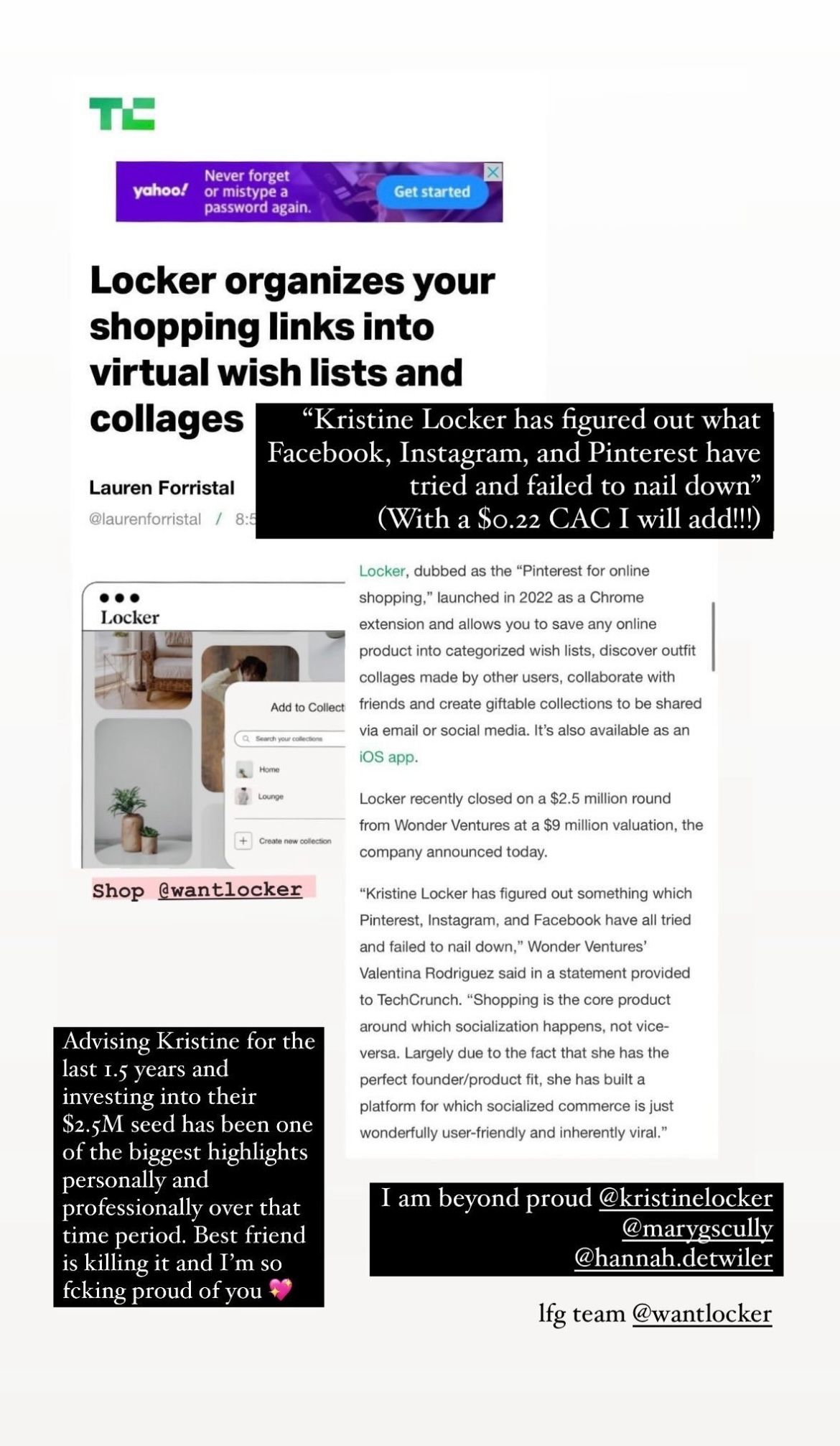 So why is the $0.22 CAC for Locker so impressive? For context, the average cost per acquisition for a shopping app in North America is $4.74. Having a $0.22 CAC basically means you are spending almost NO money to acquire customers and the product you’re building is so attractive, you don’t need to spend on ads to convince people to sign up. It also speaks to the effectiveness of the viral loops that Locker has set up within their referral networks to incentivize new users to sign up for the platform. It is a huge validation that the business model of Locker works and will be profitable at scale.